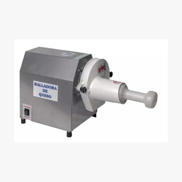 El queso se carga por la parte frontal, sale por la descarga inferior lo que permite que salga de la maquina sin romper las hebras.